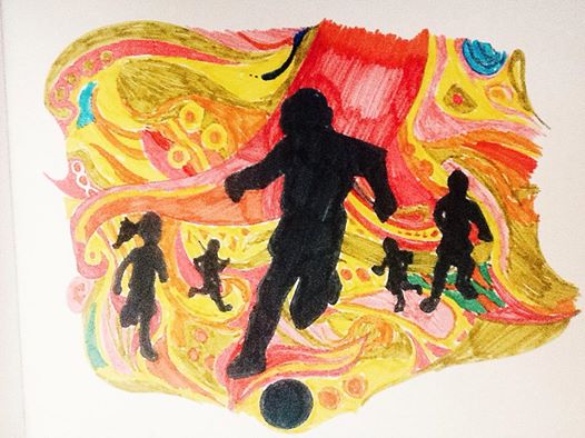 This was one made with felt tip pens, because I was (still am) hungover by Germany win, thus the prominence of the colours black, red, and yellow. I call it “Last Goal Before Mom Calls Us In For Dinner”